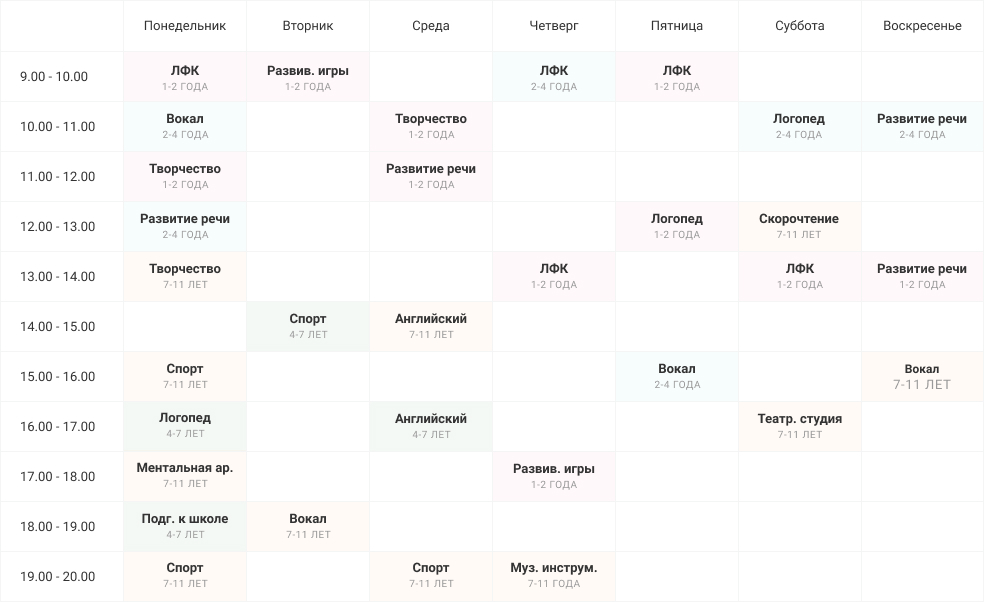 Расписание занятий детского центра на 2022 - 2023 учебный год